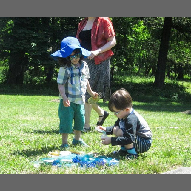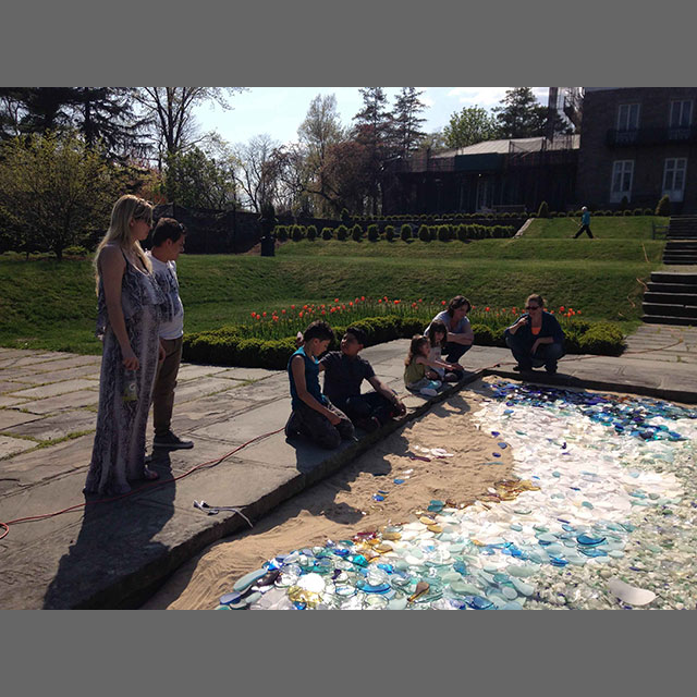 The problem with many specialized programs for children with ASD and other disabilities is that they often exclude parents, caretakers, and siblings – leading the activity to feel like a chore for the rest of the family. This was not the case for Search and Discovery, a family program held in conjunction with MJ Levy Dickson’s Like Seaglass: A Hand Full of Light-Reflection at the Bartow-Pell Mansion Museum. The program allowed young people with disabilities as well as their families the chance to participate in the art process and explore the sensory and tactile nature of the glass. Children chose pieces of glass that struck their fancy and discovered relationships with the colors, shapes, and textures that they found on the mansion grounds – an activity that anyone could enjoy. Inspired by their discoveries, families made paper collages that mirrored the colors and shapes of the glass. This inclusive program fostered sensory engagement and art appreciation for a diverse audience. In July, the program was the subject of a panel at the USSEA (United States Society for Education through Art) Conference held at the Queens Museum, where the organizers spoke on the successes of the program, what could be done differently to make it even better, and how a similar program could be held at other sites.