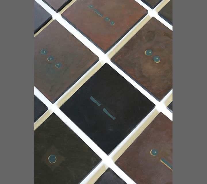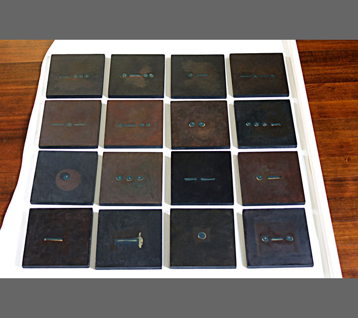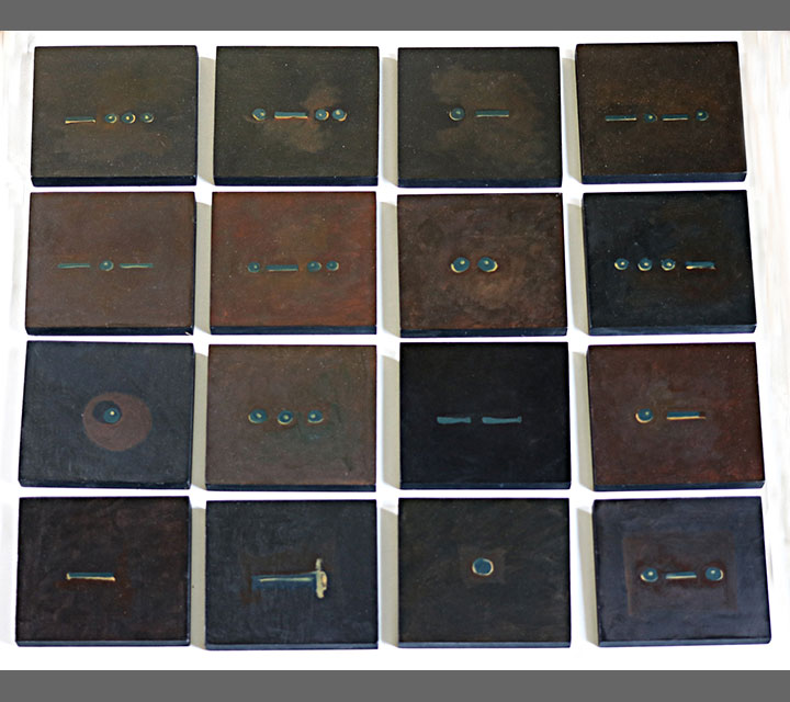 In keeping with the spirit and intention of how the Morse Code was used, each of 16, 8" x 8" panels, represents a letter of the message: