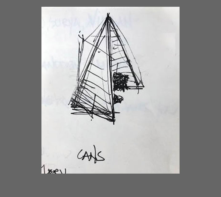 The artists' son asked about the Morse Code in the midst of creating the tree. This was an unusual idea to incorporate into the project, but we did. Using the hammered ends of the cans as "dots" and the knives for "dashes" we wrote out "We wish you a Merry Christmas" along the metal supports of the framework. The sides are composed of crushed aluminum cans, the bottles arranged in a tree pattern, the manger or nativity scene provided a story within the story. The star inside the manger was made from spatulas and serving pieces, painted gold. The halos were made from old metal fan covers. Before I left the farm I saw my first drawing in my pocket sketch book, a tiny, visual thought of a tree, emerge from an idea into a reality. When people of all cultures and countries work together the potential is limitless.