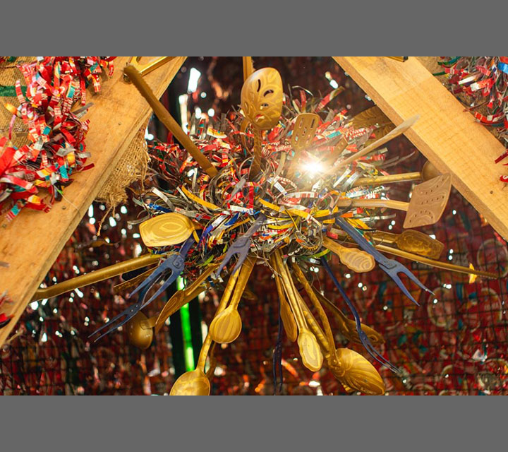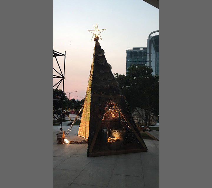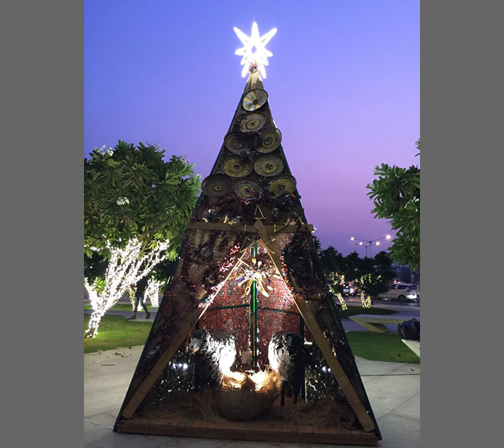 The Miracle of Christmas, Scraps and discarded materials such as bottles, cans, fan covers, and cutlery, 18' x 8' x8'