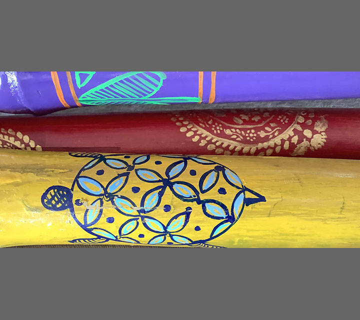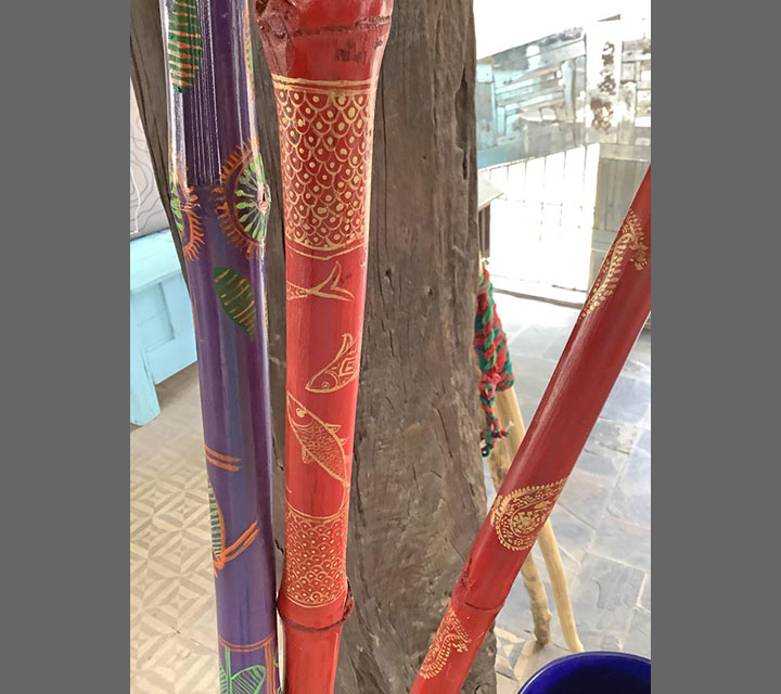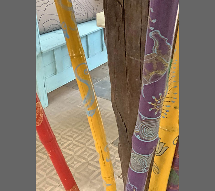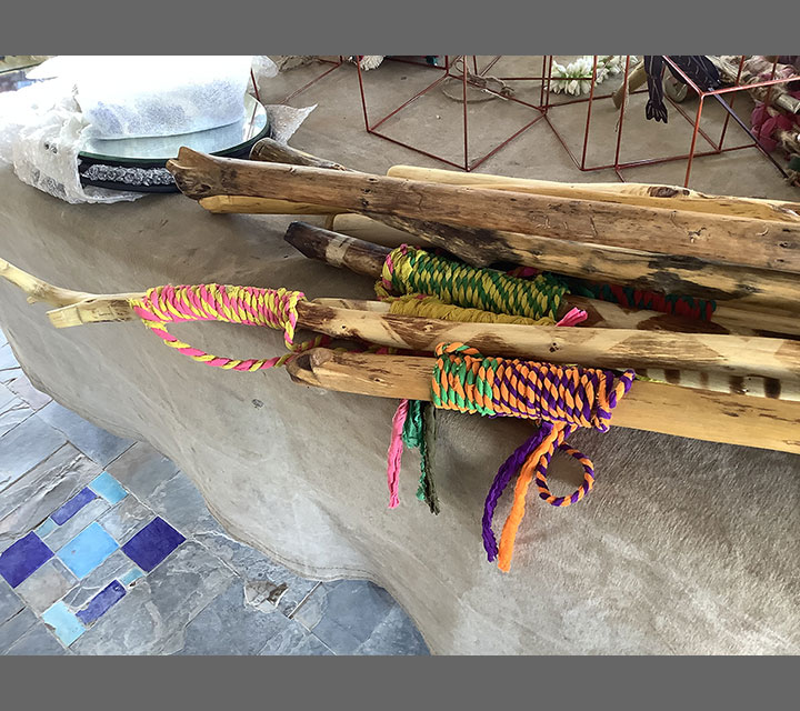 As I was walking I began to think about our minds needing a walking stick as we face decisions or navigate uncharted emotional territory. How nice to have a walking stick at these times to provide, balance, support, and confidence in making choices. This metaphysical underpinning enables us to enjoy our surroundings, our family, and our friends, instead of passing through life missing the view. These rods have been made to celebrate the Indian culture through material and design.