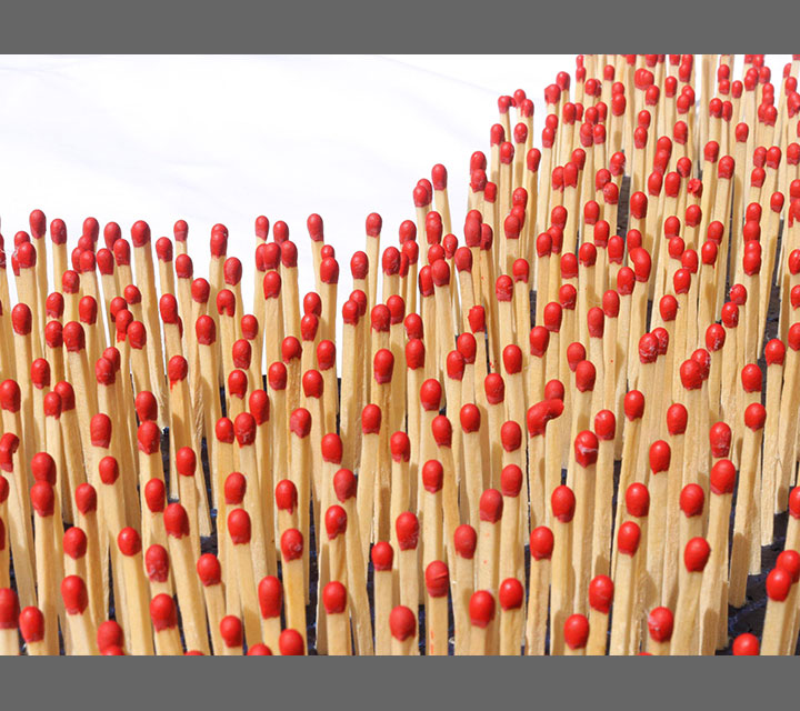 Liberty, repurposed materials: matches, glue, styrofoam packing material, and acrylic paint, 2020